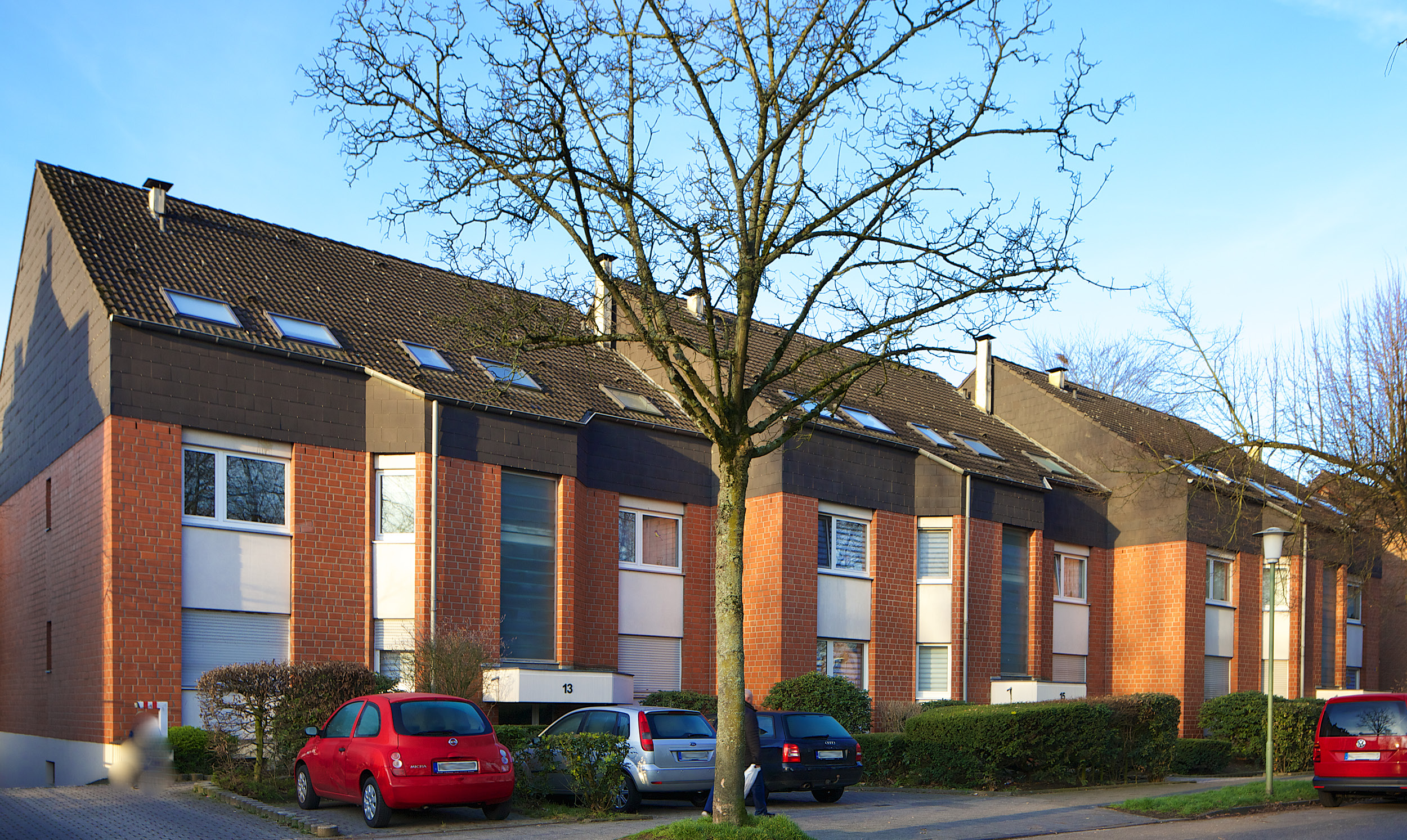 Hier wohnt man wirklich an der Neusser Stadtgrenze, die Kaarster City ist von hier aus sogar schneller erreicht als der Markt in Neuss. Pluspunkte sind hier außerdem die gute überörtliche Verkehrsanbindung durch den nahen Autobahnanschluss Holzbüttgen (A57) und den ca. 1,5 km entfernten Regiobahnanschluss Ikea Kaarst, sowie die Nähe zum Naherholungsgebiet Jröne Meerke.