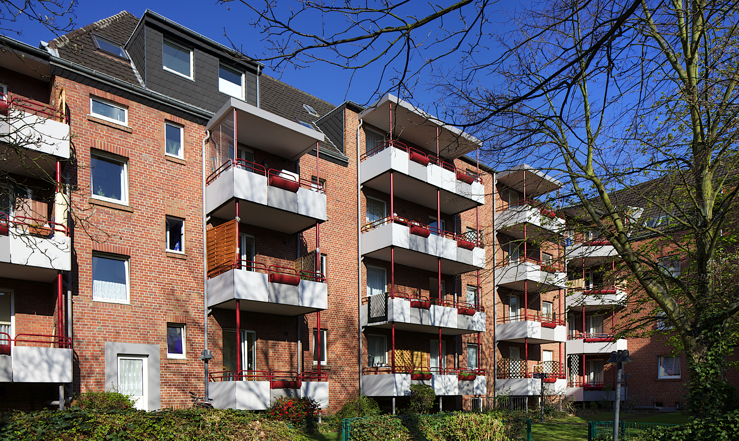 So liegen in der Ripuarierstraße die ersten Häuser, die unsere Genossenschaft im Jahr 1902, ein Jahr nach ihrer Gründung erbaut hat. Die Häuser in der Wingender Straße und der Wolkerstraße wurden im Jahr 1961 errichtet, aber auch Wohnungen aus den 1990er Jahren gibt es hier. Für die Lage spricht ihre Zentralität: In die Neusser Innenstadt ist es nicht weit, der Neusser Hauptbahnhof ist auch zu Fuß gut erreichbar. Ganz in der Nähe liegt zudem das Einkaufszentrum Römerstraße. Trotz der guten Verkehrsanbindung ist die Lärmbelastung im Viertel gering.